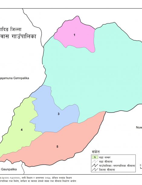 Khaniyabas is a Rural Municipality located in Dhading District of Nepal. It has total 5 wards and 121 square kilometers of geographical area. According to 2011 census, it had total population of 12,749.