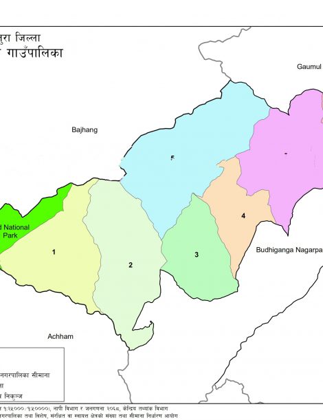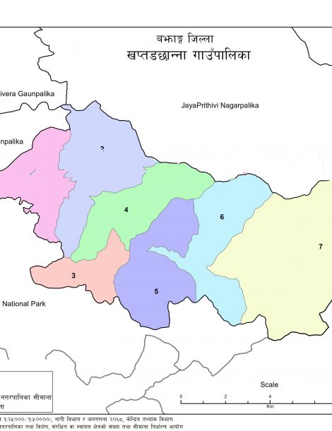 Khaptadchhanna is a Rural Municipality located in Bajhang District of Nepal. It has total 7 wards and 114 square kilometers of geographical area. According to 2011 census, it had total population of 15,893.