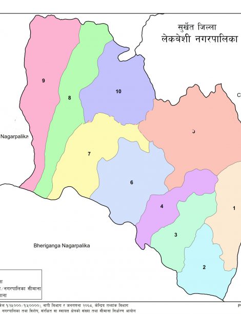 Lekbeshi is a Municipality located in Surkhet District of Nepal. It has total 10 wards and 181 square kilometers of geographical area. According to 2011 census, it had total population of 30,295.
