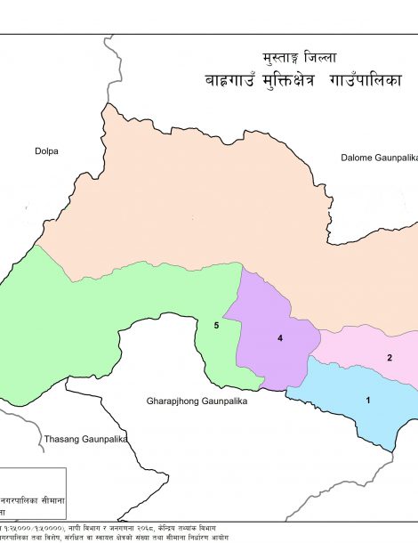 Bahragau Muktichhetra is a Rural Municipality located in Mustang District of Nepal. It has total 5 wards and 886 square kilometers of geographical area. According to 2011 census, it had total population of 2,330.