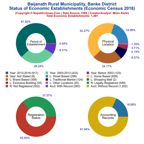 Baijanath is a Rural Municipality located in Banke District of Nepal. It has total 8 wards and 142 square kilometers of geographical area. According to 2011 census, it had total population of 54,418.