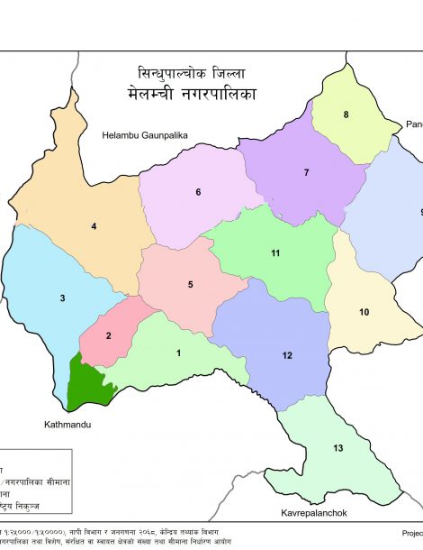 Melamchi is a Municipality located in Sindhupalchok District of Nepal. It has total 13 wards and 158 square kilometers of geographical area. According to 2011 census, it had total population of 45,343.