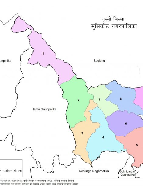 Musikot is a Municipality located in Gulmi District of Nepal. It has total 9 wards and 115 square kilometers of geographical area. According to 2011 census, it had total population of 32,802.