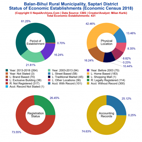 Balan-Bihul is a Rural Municipality located in Saptari District of Nepal. It has total 6 wards and 33 square kilometers of geographical area. According to 2011 census, it had total population of 26,068.