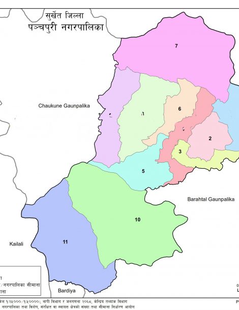 Panchapuri is a Municipality located in Surkhet District of Nepal. It has total 11 wards and 330 square kilometers of geographical area. According to 2011 census, it had total population of 32,231.
