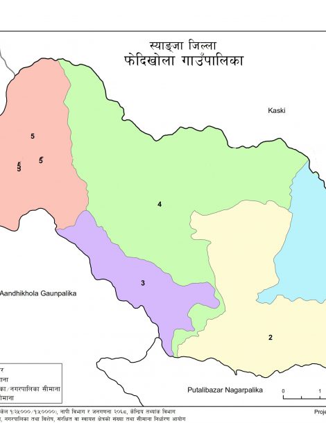 Phedikhola is a Rural Municipality located in Syangja District of Nepal. It has total 5 wards and 57 square kilometers of geographical area. According to 2011 census, it had total population of 12,341.