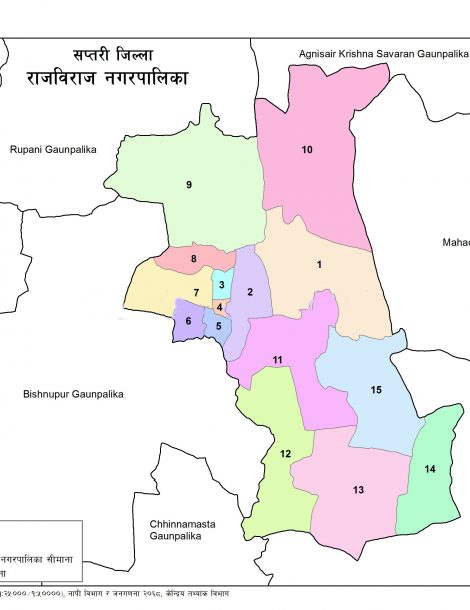 Rajbiraj is a Municipality located in Saptari District of Nepal. It has total 16 wards and 55 square kilometers of geographical area. According to 2011 census, it had total population of 69,803.