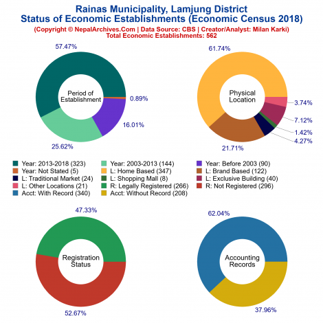 Rainas is a Municipality located in Lamjung District of Nepal. It has total 10 wards and 72 square kilometers of geographical area. According to 2011 census, it had total population of 18,527.
