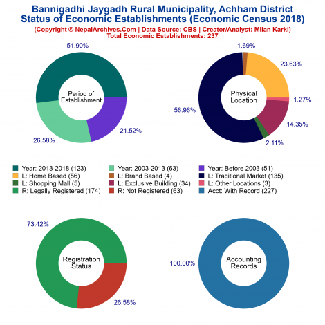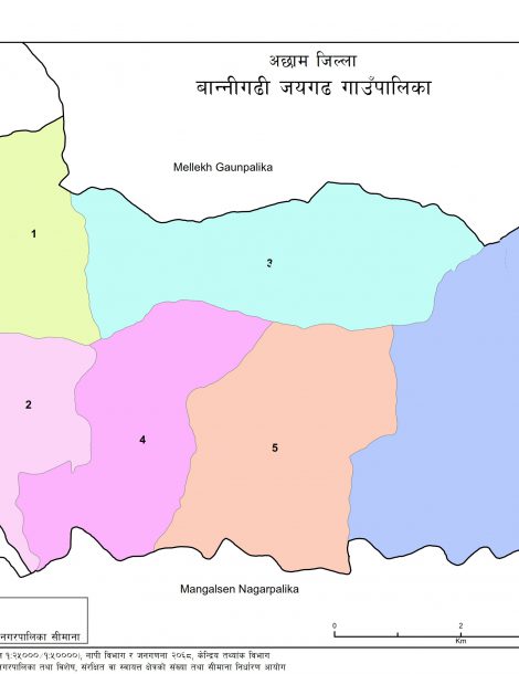 Bannigadhi Jaygadh is a Rural Municipality located in Achham District of Nepal. It has total 6 wards and 58 square kilometers of geographical area. According to 2011 census, it had total population of 17,359.