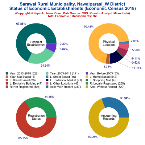 Sarawal is a Rural Municipality located in Nawalparasi_W District of Nepal. It has total 7 wards and 73 square kilometers of geographical area. According to 2011 census, it had total population of 38,163.