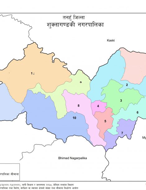 Shuklagandaki is a Municipality located in Tanahun District of Nepal. It has total 12 wards and 165 square kilometers of geographical area. According to 2011 census, it had total population of 48,456.