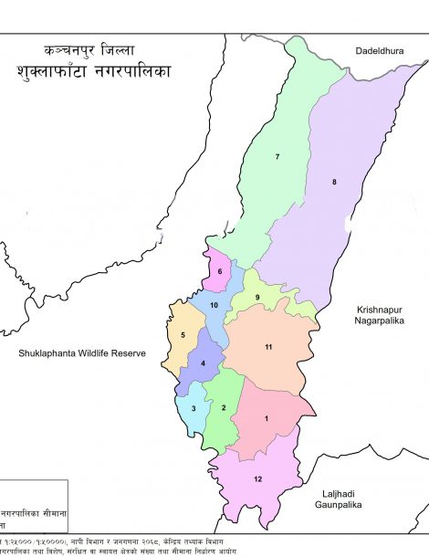 Shuklaphanta is a Municipality located in Kanchanpur District of Nepal. It has total 12 wards and 163 square kilometers of geographical area. According to 2011 census, it had total population of 46,834.