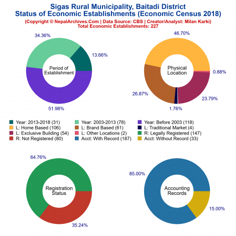Sigas is a Rural Municipality located in Baitadi District of Nepal. It has total 9 wards and 245 square kilometers of geographical area. According to 2011 census, it had total population of 21,510.