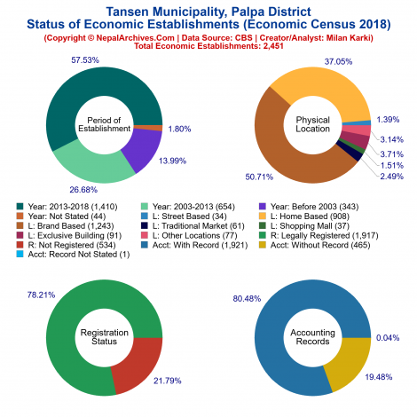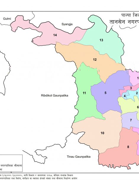 Tansen is a Municipality located in Palpa District of Nepal. It has total 14 wards and 110 square kilometers of geographical area. According to 2011 census, it had total population of 50,405.