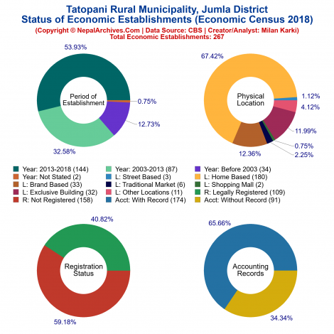 Tatopani is a Rural Municipality located in Jumla District of Nepal. It has total 8 wards and 526 square kilometers of geographical area. According to 2011 census, it had total population of 14,638.