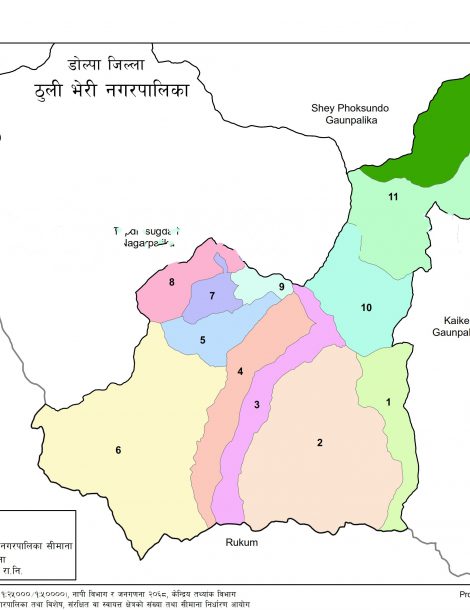 Thuli Bheri is a Municipality located in Dolpa District of Nepal. It has total 11 wards and 421 square kilometers of geographical area. According to 2011 census, it had total population of 8,370.