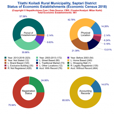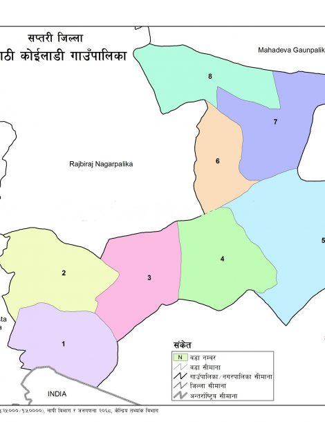 Tilathi Koiladi is a Rural Municipality located in Saptari District of Nepal. It has total 8 wards and 33 square kilometers of geographical area. According to 2011 census, it had total population of 32,389.
