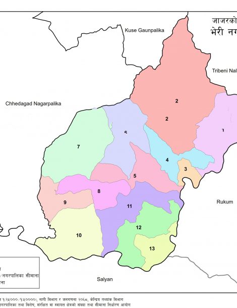 Bheri is a Municipality located in Jajarkot District of Nepal. It has total 13 wards and 220 square kilometers of geographical area. According to 2011 census, it had total population of 33,515.