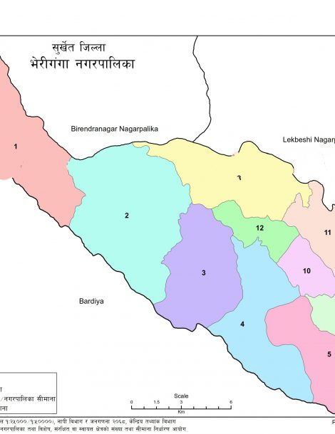 Bheriganga is a Municipality located in Surkhet District of Nepal. It has total 13 wards and 256 square kilometers of geographical area. According to 2011 census, it had total population of 41,407.