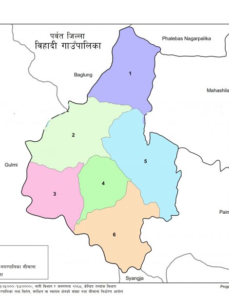Bihadi is a Rural Municipality located in Parbat District of Nepal. It has total 6 wards and 45 square kilometers of geographical area. According to 2011 census, it had total population of 13,403.