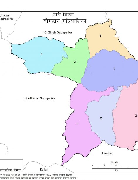 Bogatan Phudisal is a Rural Municipality located in Doti District of Nepal. It has total 7 wards and 300 square kilometers of geographical area. According to 2011 census, it had total population of 17,902.