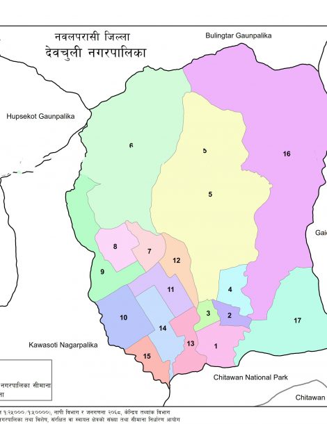 Devchuli is a Municipality located in Nawalparasi_E District of Nepal. It has total 17 wards and 113 square kilometers of geographical area. According to 2011 census, it had total population of 42,603.