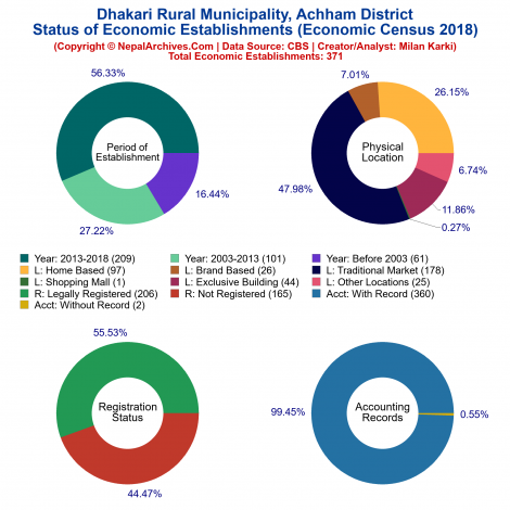 Dhakari is a Rural Municipality located in Achham District of Nepal. It has total 8 wards and 228 square kilometers of geographical area. According to 2011 census, it had total population of 21,562.