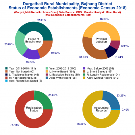 Durgathali is a Rural Municipality located in Bajhang District of Nepal. It has total 7 wards and 62 square kilometers of geographical area. According to 2011 census, it had total population of 12,972.