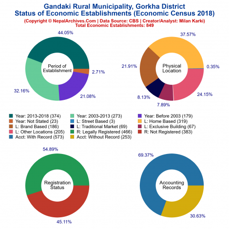 Gandaki is a Rural Municipality located in Gorkha District of Nepal. It has total 8 wards and 124 square kilometers of geographical area. According to 2011 census, it had total population of 23,253.