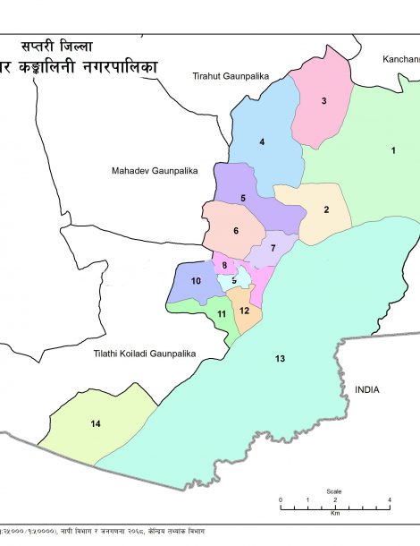 Hanumannagar Kankalini is a Municipality located in Saptari District of Nepal. It has total 14 wards and 118 square kilometers of geographical area. According to 2011 census, it had total population of 45,734.