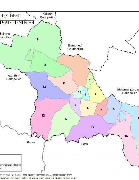 Hetauda is a Sub-Metropolitan City located in Makwanpur District of Nepal. It has total 19 wards and 262 square kilometers of geographical area. According to 2011 census, it had total population of 152,875.