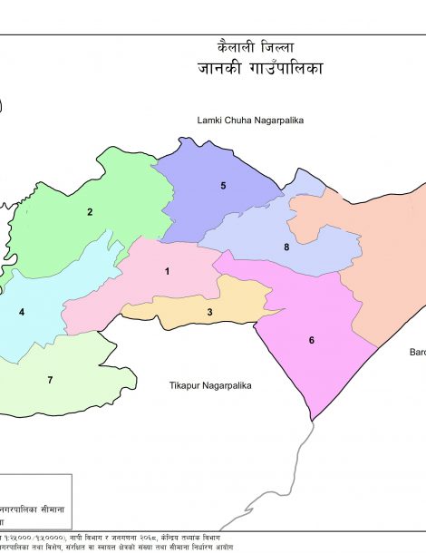 Janaki is a Rural Municipality located in Kailali District of Nepal. It has total 9 wards and 107 square kilometers of geographical area. According to 2011 census, it had total population of 48,540.