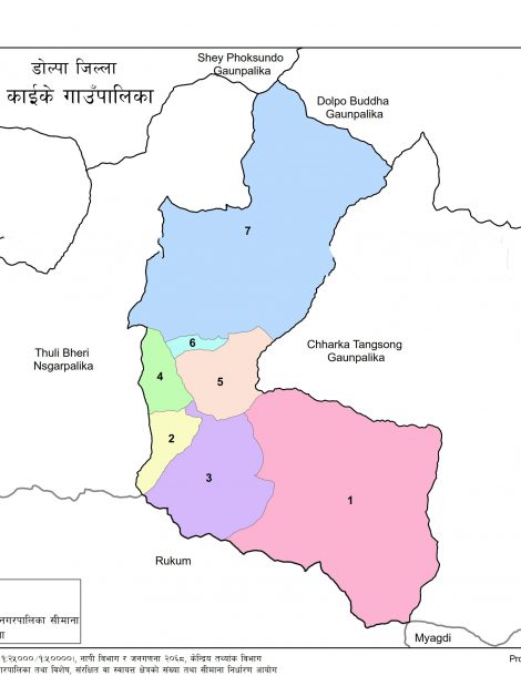Kaike is a Rural Municipality located in Dolpa District of Nepal. It has total 7 wards and 467 square kilometers of geographical area. According to 2011 census, it had total population of 3,576.